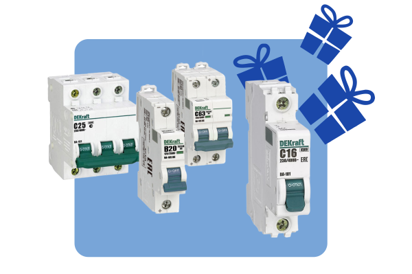 Рады сообщить, при покупке 3-х любых автоматических выключателей 1 автомат (16А) в подарок.