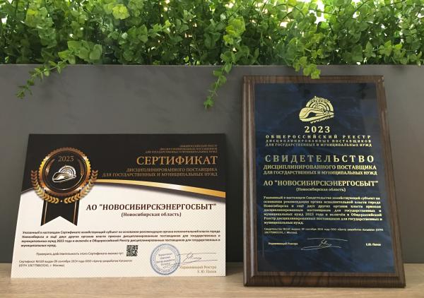 АО «Новосибирскэнергосбыт» включен в Общероссийский Реестр дисциплинированных поставщиков