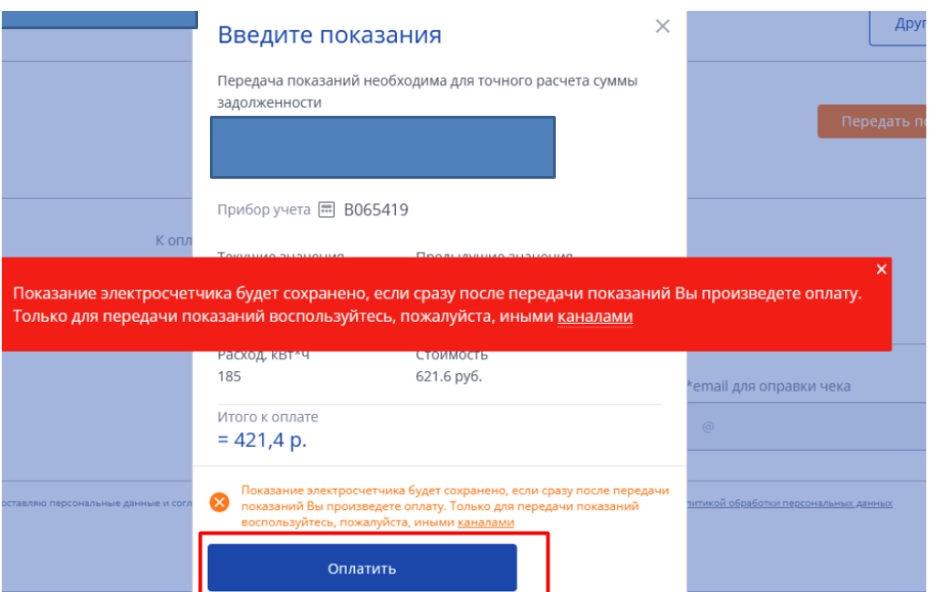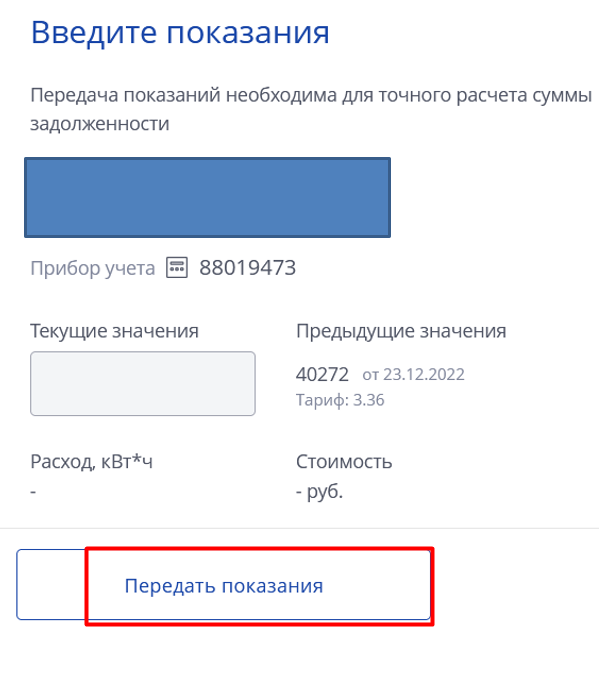 5. Введите текущее показание в открывшемся окне, затем нажимаете "Передать показание".