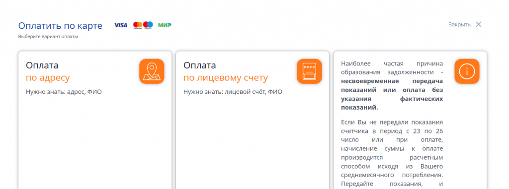 1. Выбираете: "Оплата по адресу" или "Оплата по лицевому счету".