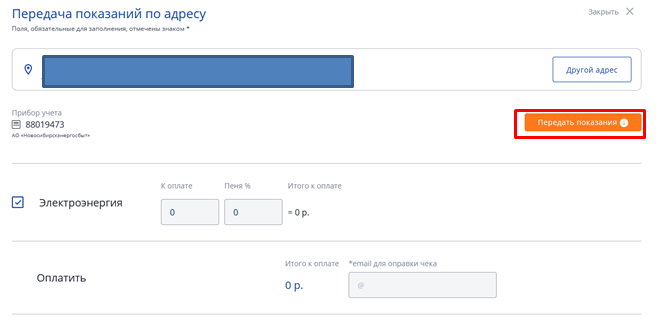 4. Затем заполняете e-mail для отправки чека и нажимаете кнопку "Передать показания".