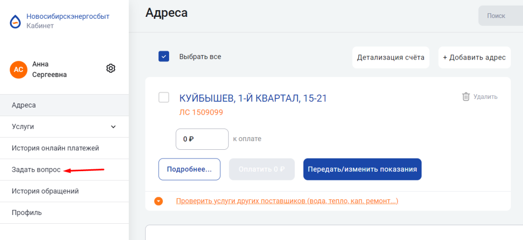 Если у Вас несколько адресов, показания необходимо передать по каждому адресу/счетчику отдельно.
